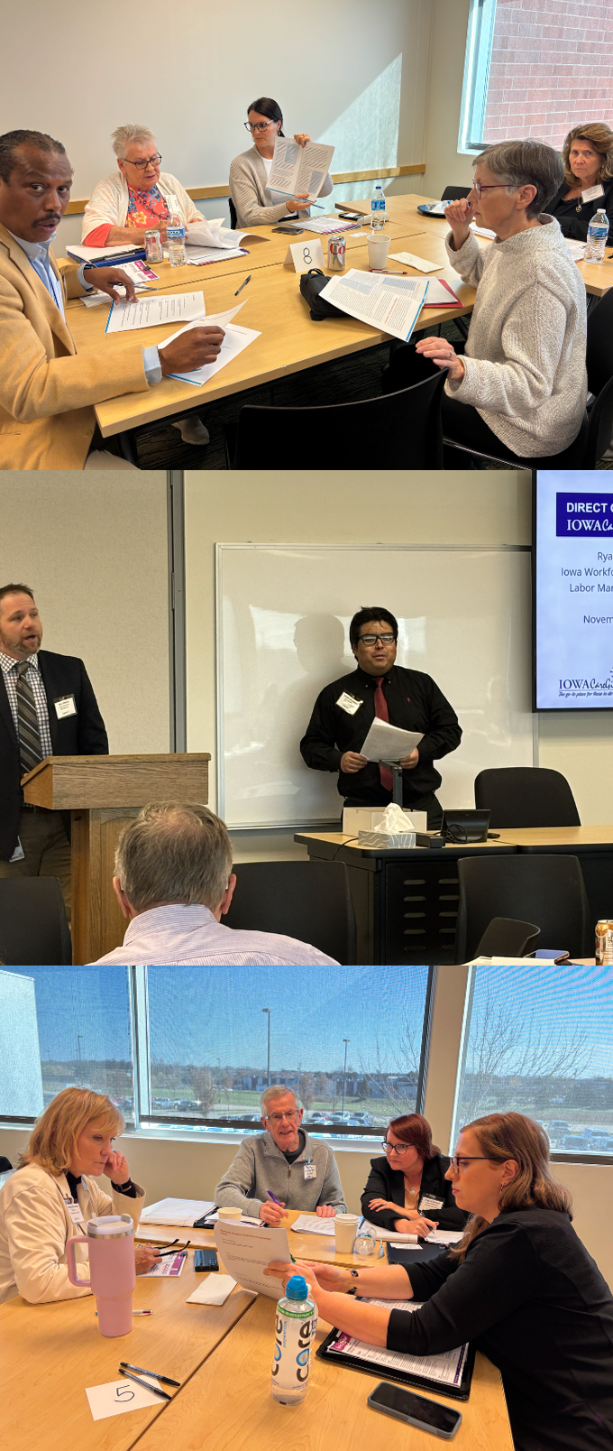 Attendees of the event, co-hosted by Iowa CareGivers and Des Moines Area Community College, included direct care workers, people with disabilities, older Iowans, family caregivers, employers and educators of direct care workers, advocates, and representatives of state agencies. Also in attendance was Representative Michael Bergan (R-District 63) and caucus staff Witt Harberts. The morning showcased promising state-led initiatives, all of which have some recommendations or focus on direct care worker wages or portability of direct care worker credentials. And those were the two focus areas of the day. Ryan Murphy, Iowa Workforce Development (IWD), presented the findings of the 2025 Direct Care Workers of Iowa Wage and Benefit survey, a partnership between Iowa CareGivers and IWD. Greg Woods, Division of Public Health, presented on Iowa's BOLD Initiative Eugenia Kendall, Division on Aging and Disability Services, presented on their Multi-sector Plan on Aging and Disability - IA SAIL program, and Kathy Leggett, IWD, presented on a technical assistance grant recently awarded to Iowa by the National Direct Care Workforce Strategies Center.